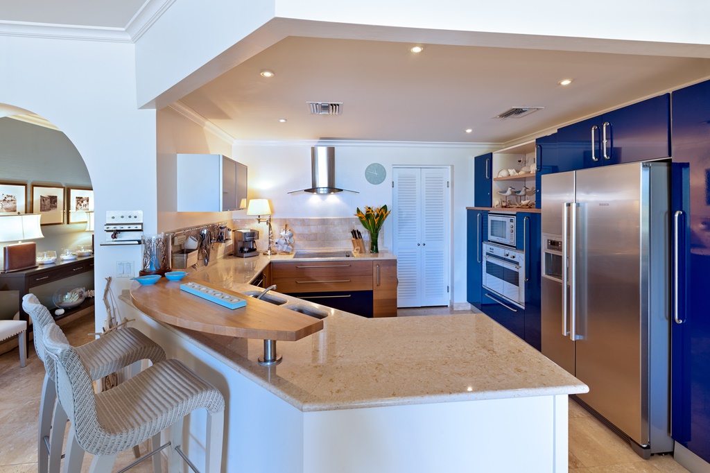 A spacious entrance hall leads to the main living area which features an open plan design and flows onto a covered dining terrace where guests can relax and enjoy the panoramic ocean views and breath-taking sunsets. For those looking to try their hands at some Caribbean cuisine, there is a fully equipped kitchen with stainless steel appliances nestled into the corner of the living space.