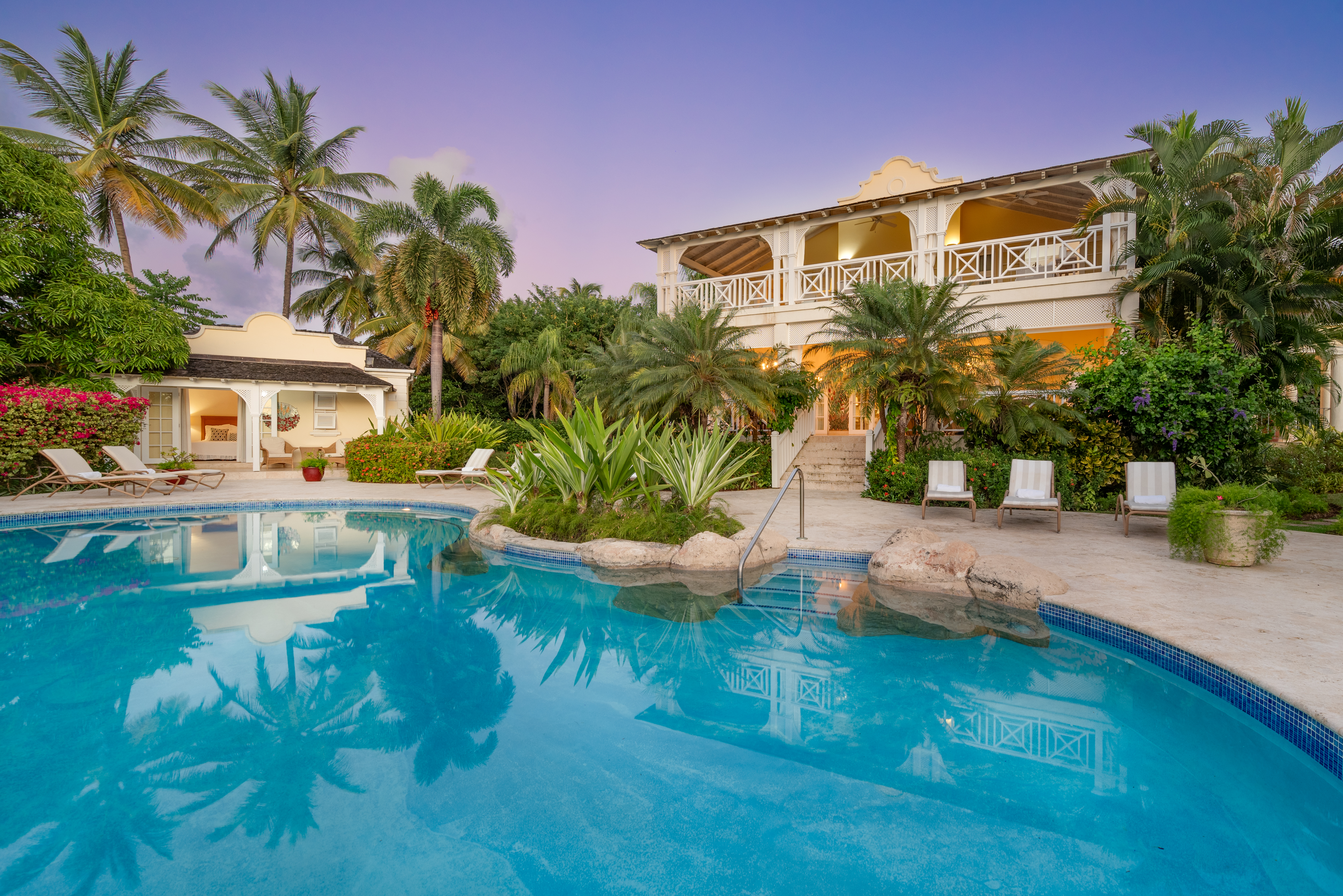 Calliaqua caters comfortably for up to 10 guests with its four elegantly designed en-suite bedrooms and delightful one bedroom cottage. A stay at Calliaqua automatically provides membership at the nearby Fairmont Royal Pavilion Beach Club, ideally situated on one of the west coast’s most beautiful beaches and offering access to water sports, beach restaurants, as well as loungers, umbrellas and beach bar service. Use of the exclusive Fairmont Beach Club paired with Calliaqua’s lush and cooling hilltop location makes for an unbeatable Barbados combination.
