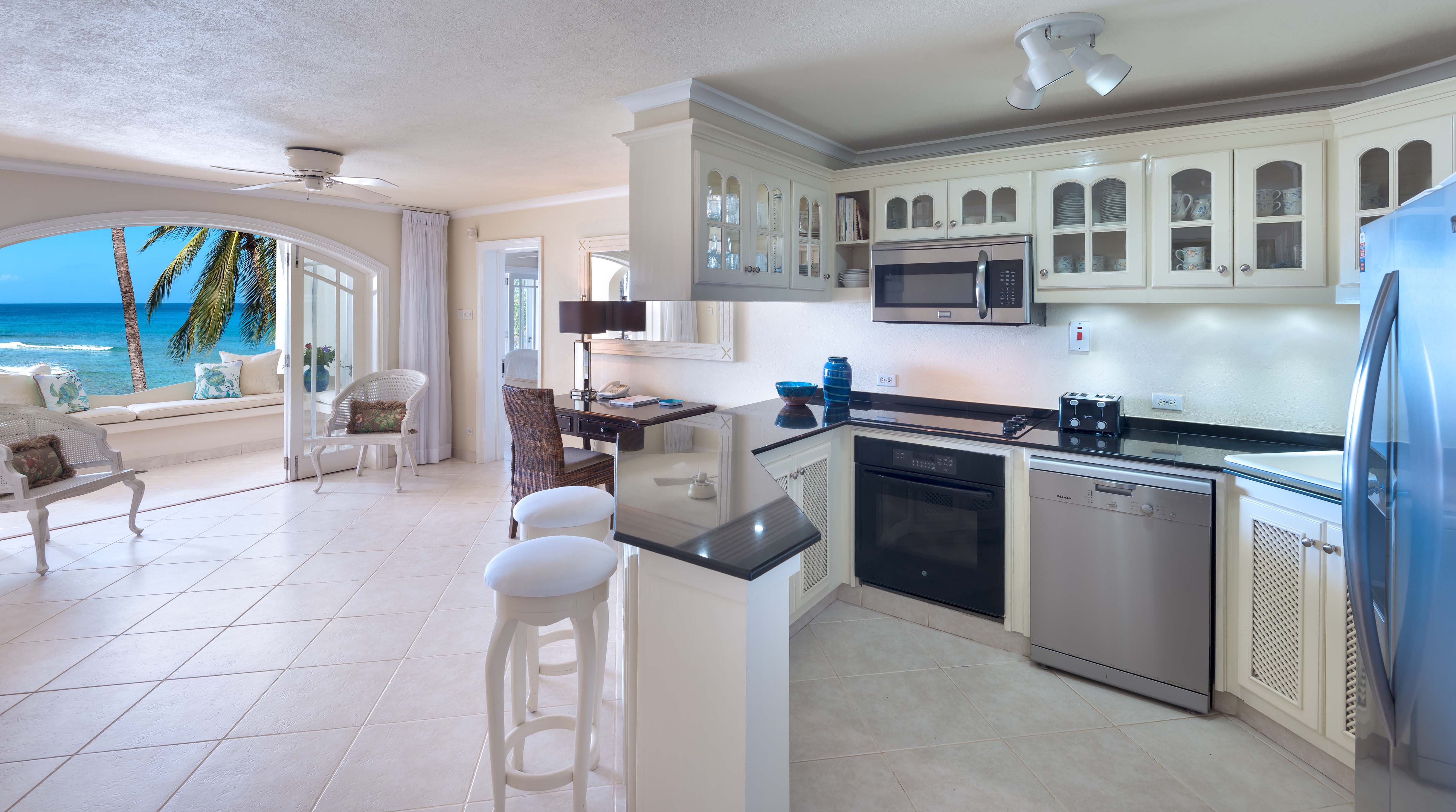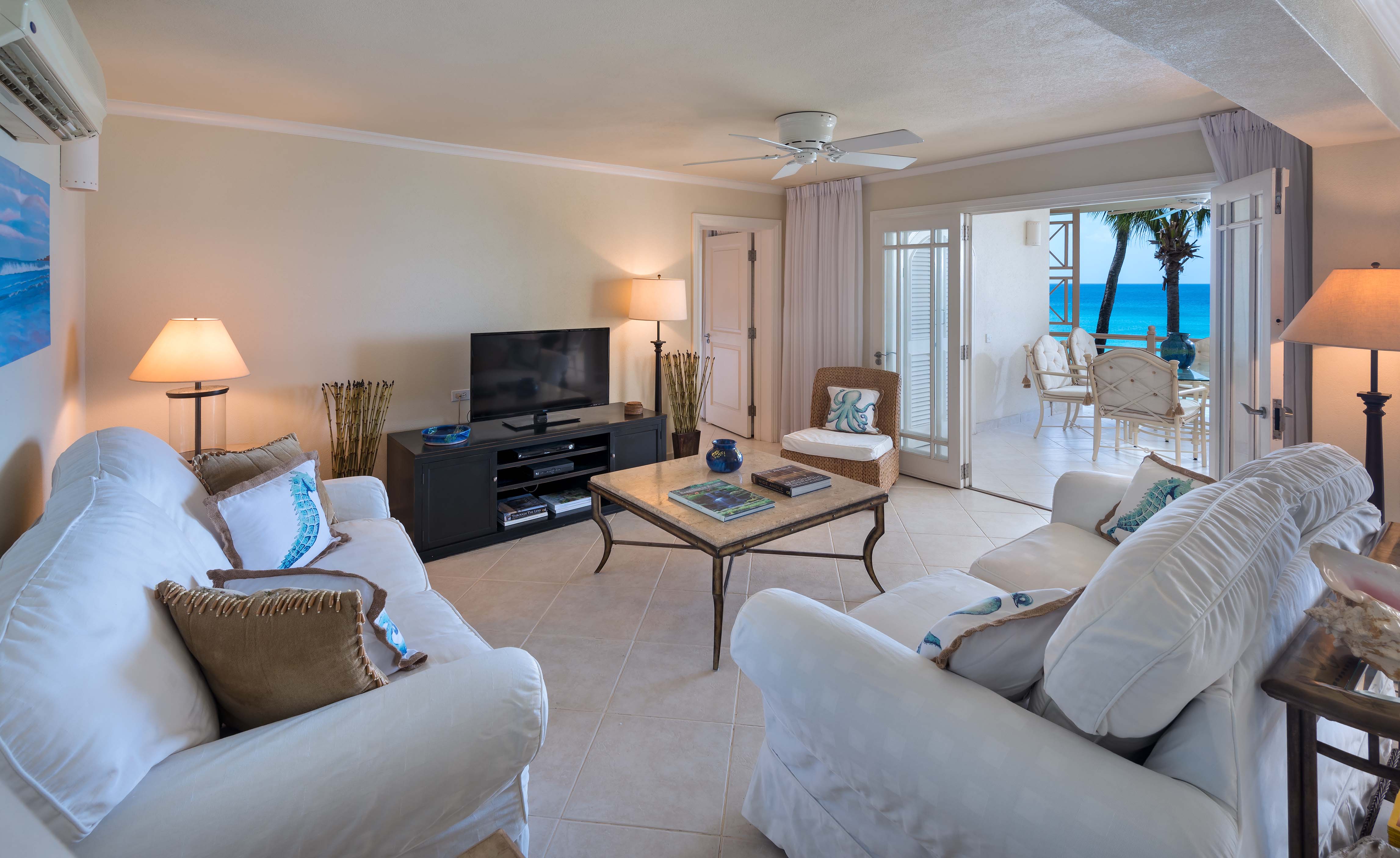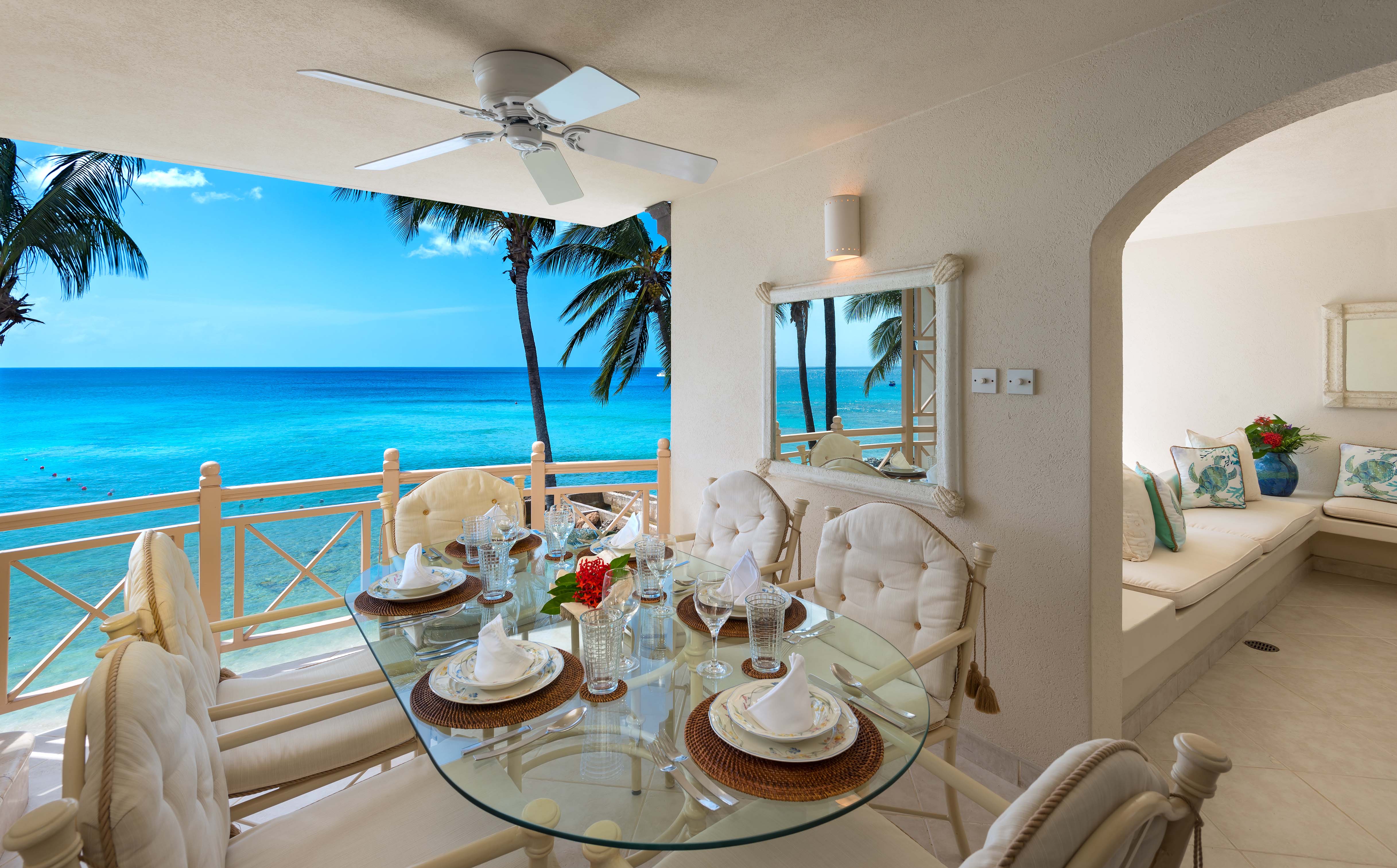 Penthouse No. 14 can be rented with Penthouse No. 13 to accommodate a larger group as the two penthouses have inter-connecting doors. Reeds House is a secluded boutique beach-front development between the Royal Pavilion and Cobblers Cove Hotels. Sandy Lane and the Royal Westmoreland golf courses are only a 5 - 10 minute drive away, as are several tennis clubs and health spas. This stretch of coastline, commonly known as the Platinum Coast, is home to some of the Caribbean's finest restaurants and bars. Shopping is close by in Holetown and Speightstown.